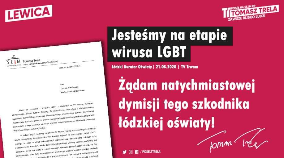 Z inicjatywy posła Lewicy, Tomasza Treli Łodzki Kurator Oświaty Grzegorz Wierzchowski został odwołany!
